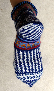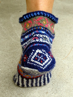 This pattern comes from Priscilla Gibson-Robert's book "Ethnic Socks and Stockings". I enjoyed knitting them, however made a few changes in the original pattern.