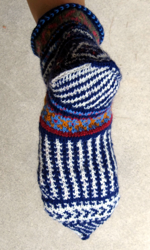 Just finished this first one from the pair. The pattern is from Priscilla Gibson Roberts excellent book Ethnic Socks and Stockings. I changed the pattern somewhat: made them shorter. The top of the sock is crocheted using Bosnian Crochet stitch. To learn more about Jorabs, please visit this Wikipedia page. My friend and I wrote it, and will be happy for any contribution of text or images!
